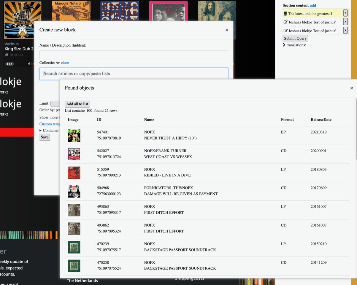 De nieuwe gemaakte collectie kun je vervolgens aanpassen en op de juiste plek op de pagina plaatsen.